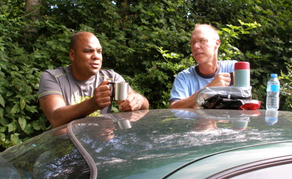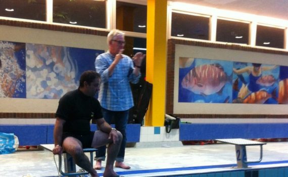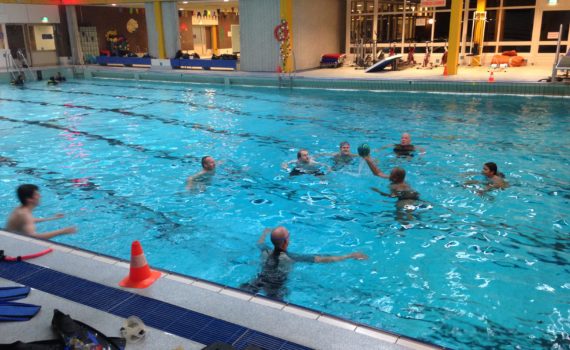 Herman had weer iets leuks bedacht voor ons. Volleyballen en touwtje trekken. Was weer pittig met een hoop watertrappelen.